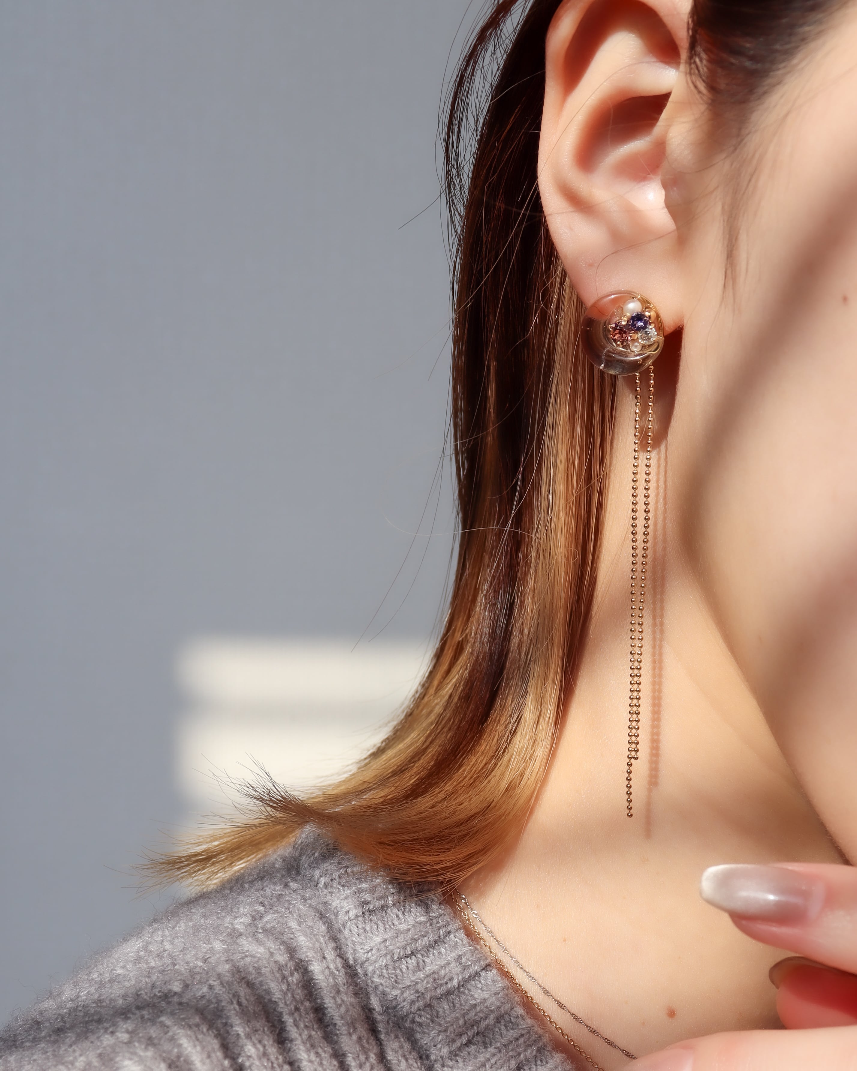イヤリングなヒキワという金具で付け外し可。