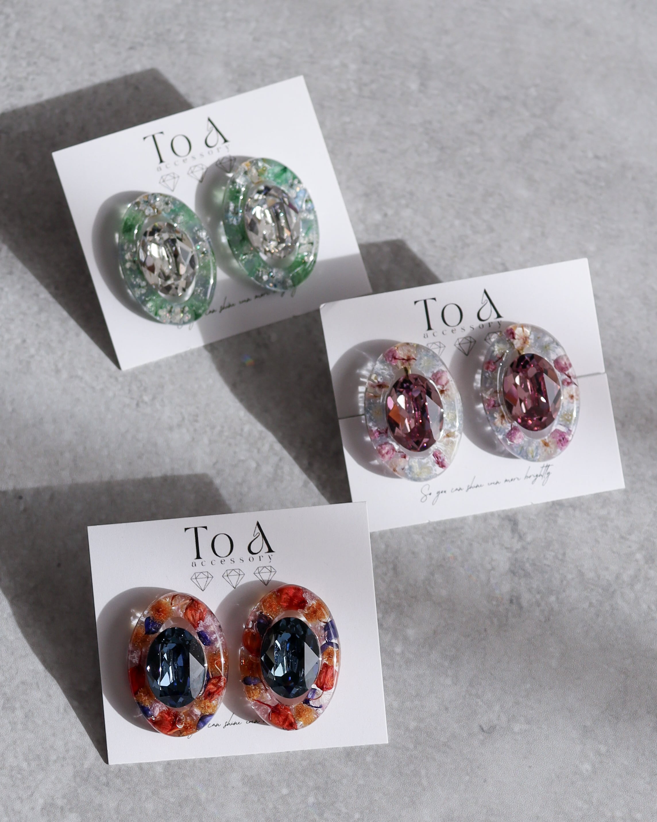 クリスタルガラス レジン キラキラ うる艶 大ぶり 軽い 高見え 華やか 花 レジンピアス レジンイヤリング 着け軽 ドライフラワー カラフル デザイン コーデ プレゼント ギフト 贈り物 お花のイヤリング
