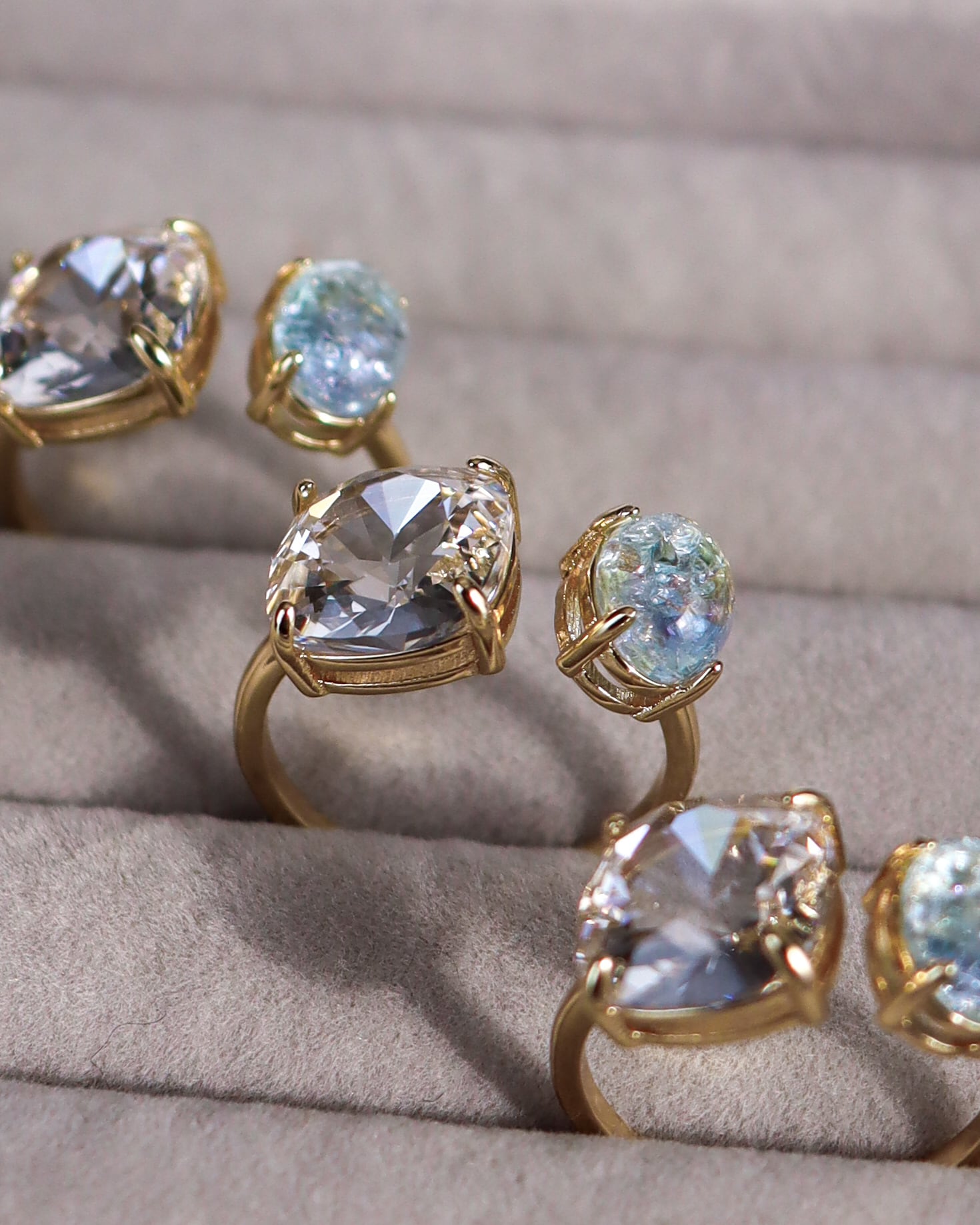 閉じ込めたレジンを合わせたリングは、
