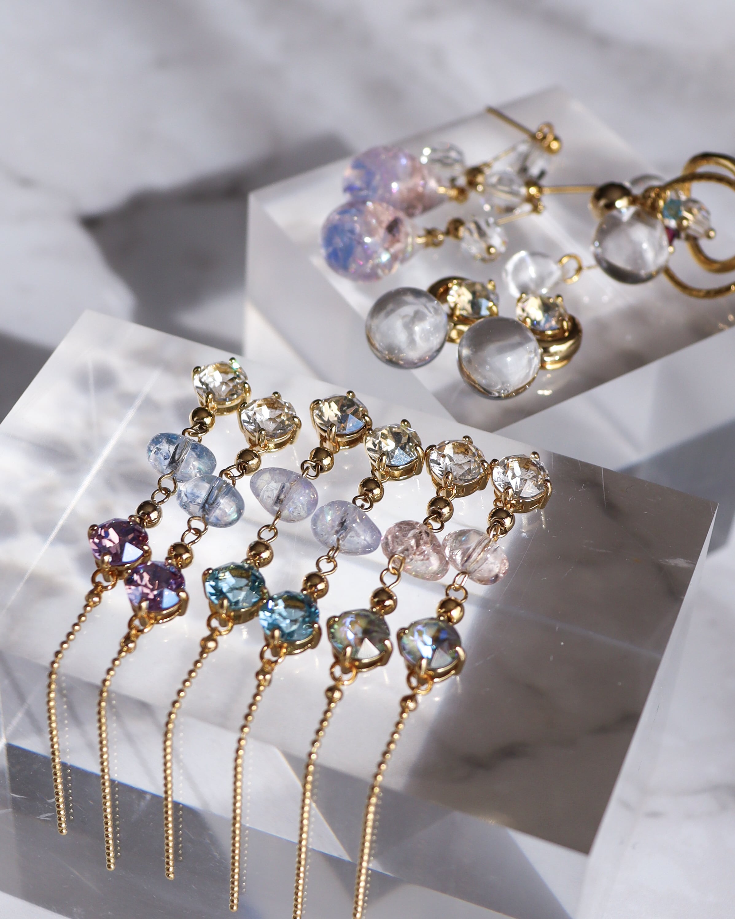 レジンアクセサリー レジンピアス レジンイヤリング キラキラピアス キラキライヤリング 揺れるピアス 揺れるイヤリング クリスタルガラス カラフルアクセサリー アレルギー対応 サージカルステンレス プレゼント ギフト ラッピング